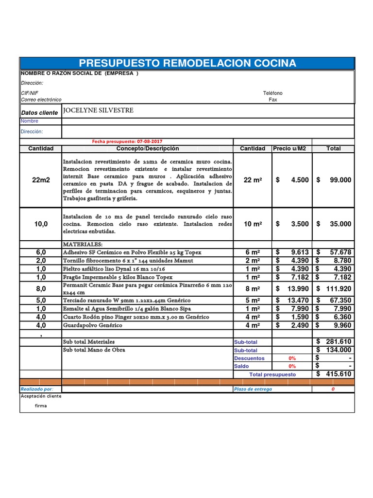 Configura tu cocina colocando todos los elementos que vas a necesitar y consigue un presupuesto apróximado para tu cocina, ¡más fácil que nunca! Los mejores profesionales de tu zona te enviaran presupuestos gratis y sin compromiso. El precio de reformar la cocina es 2126, presupuesto reforma de la cocina 1115, ejemplo cocina precio 1395, presupuesto cocina 1111. No lo tengo claro quiero que me asesoren. Estamos a tu disposición para ofrecerte un presupuesto online en este enlace.